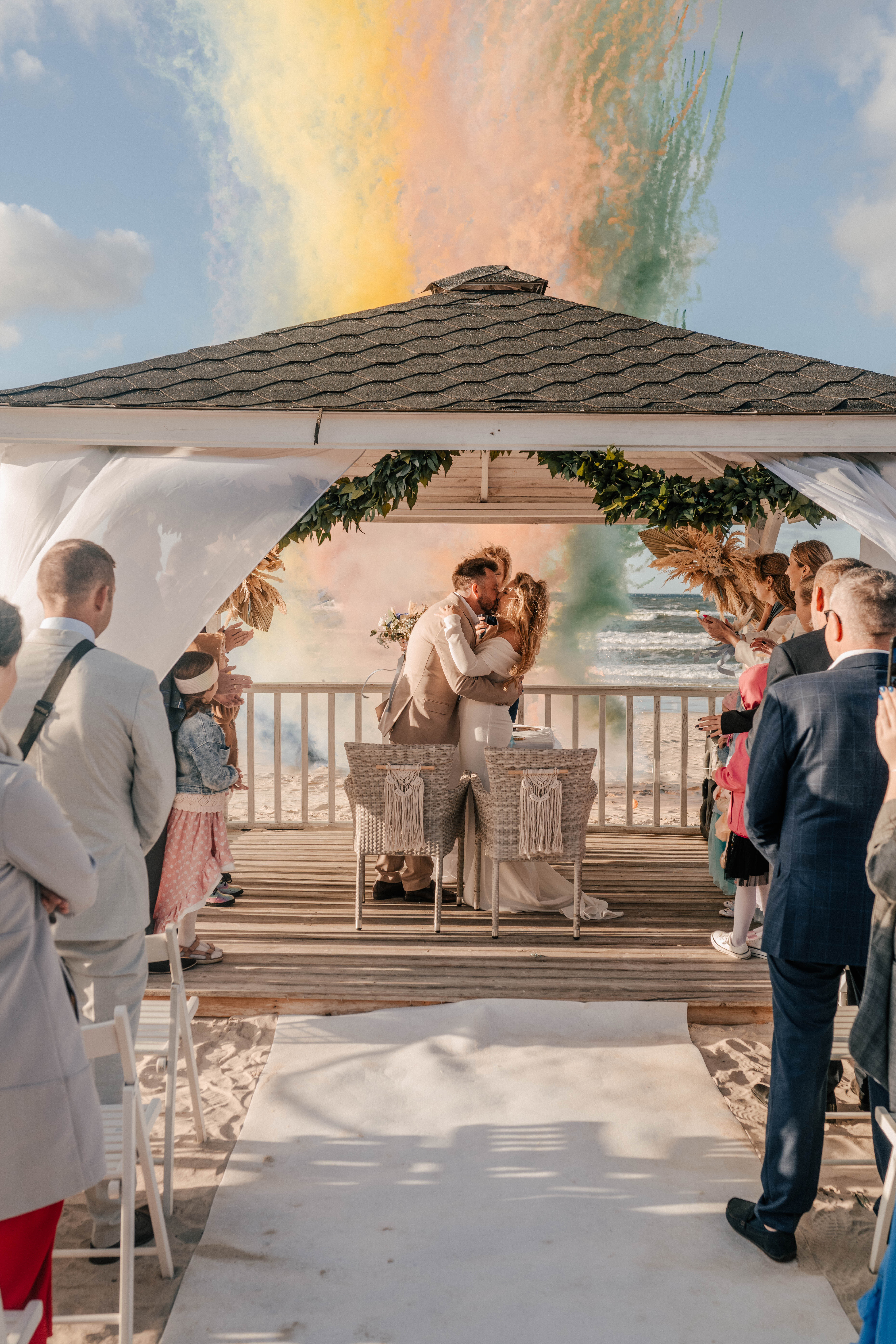 W dniu ślubu nagle — jak na zawołanie — pojawiło się okno pogodowe. Nie było już deszczu, pojawiło się słońce, a na horyzoncie tylko wiatr walczył z fryzurami. Ale nic nie mogło przeszkodzić w tej ceremonii.